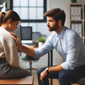 You can start simply with, how are you? You look worried today! If your relationship is mature/old enough you can initiate a hug or hold hands.